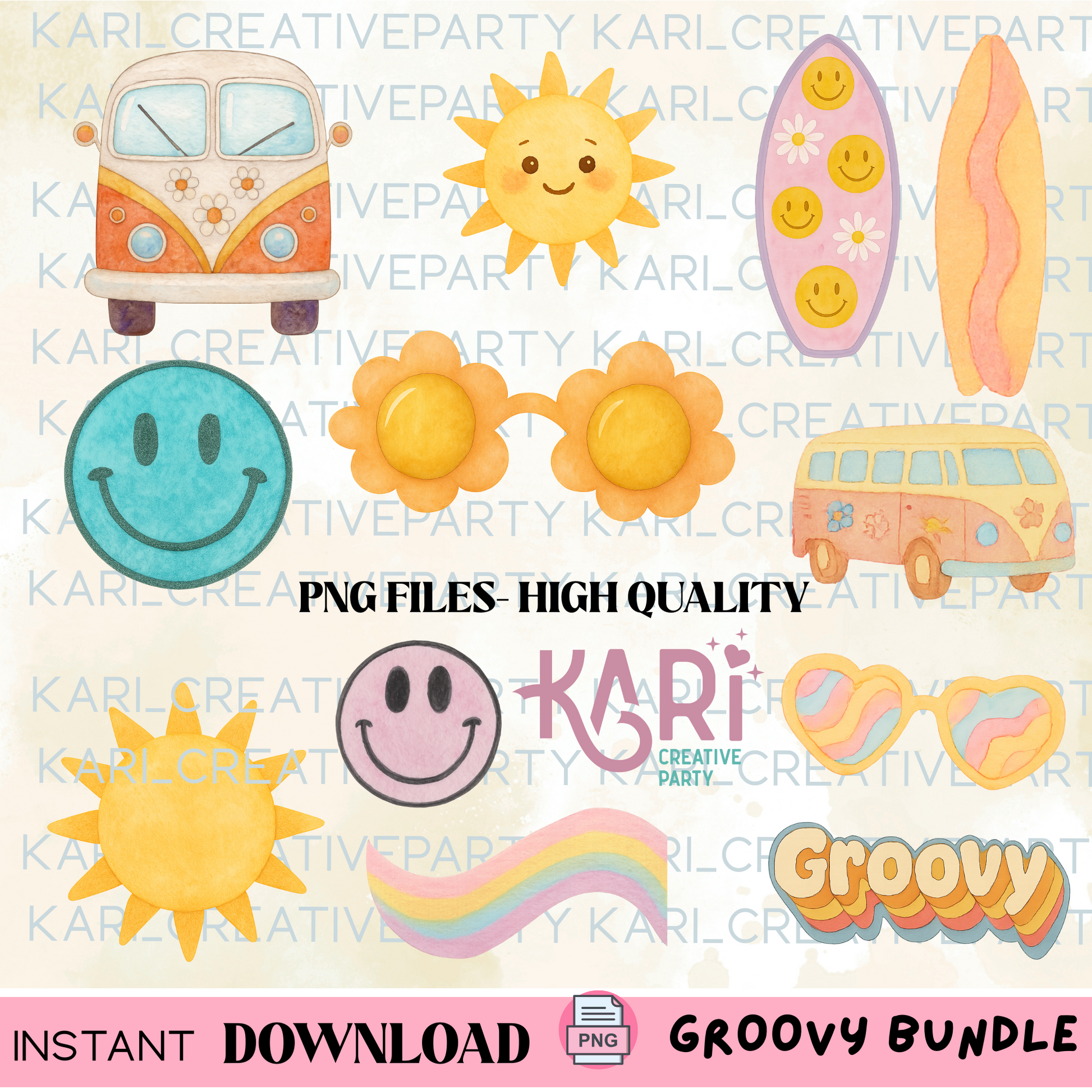 Bring good vibes to your next project with this Groovy Watercolor Clipart Bundle! βοΈπ